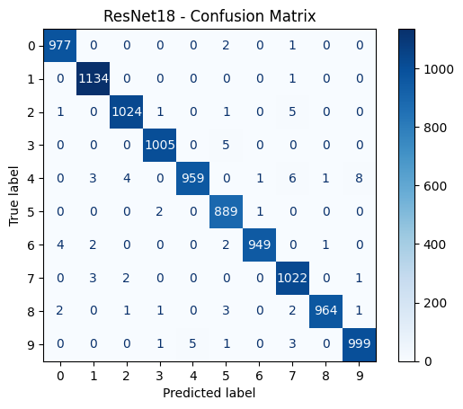 Dataset Summary: 70,000 images • 10 classes • 28×28 grayscale • resized to 224×224 • RGB conversion • normalized input